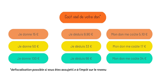 100 € => financer la totalité des coûts (ateliers + travail équipe de Blabla Création + matériel, etc.) pour qu'1 apprenant.e suive 2 ateliers.