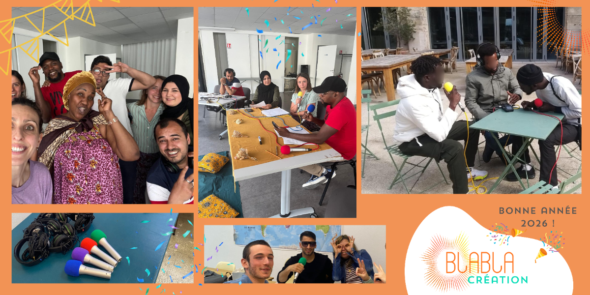 ⭐️ Blabla Création accompagne les personnes nouvellement arrivées en France dans leur apprentissage du français à travers une méthode basée sur la fabrication collective de podcasts.